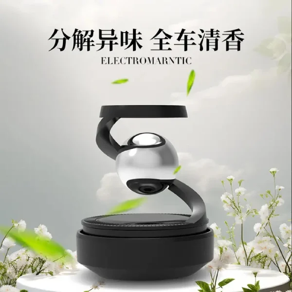 - خوشبوکننده خورشیدی مدل گوی معلق یک خوشبوکننده جذاب با نمایی جادویی که نشانگر یک گوی زیبای معلق بین پایههای چرخان است. این محصول دارای پنل خورشیدی بوده و با تابش نور خورشید شروع به چرخش میکند و یک صحنه جذاب و زیبا را به نمایش میگذارد. این خوشبو کننده با کیفیت دارای یک پد اسانس میباشد که در محفظه پایین گوی قرار میگیرد و رایحهای دلنشین دارد. با پیشرفت طراحیهای نوین این خوشبو کنندهها دیگر تنها یک خوشبو کننده ساده نبوده بلکه جزیی از دکوراسیون خودرو محسوب میشوند. این مدل از خوشبو کننده نیز با بدنه با کیفیت و مجهز به تکنولوژی چرخش خورشیدی و طراحی منحصر به فرد خود نگاهها را به خود معطوف میسازد. ساز و کار این اکسسوری بدین شکل است که با قرار گرفتن در برابر نور خورشید دو حلقه روی یکدیگر میرقصند و گوی معلق در وسط به شدت خودنمایی میکند. طراحی شیک و مدرن این وسیله آن را فراتر از یک خوشبو کننده معرفی میکند. این محصولات بیشتر جنبه نزیینی دارند و زیبایی آن فراتر از خوشبوکنندگی آن است اگر چه که از نظر اقتصادی نیز کاملاً بصرفه بوده و میتوان با تهیه کردن اسانس مورد نظر خود بارها و بارها پد اسانس آن را شارژ نمود.