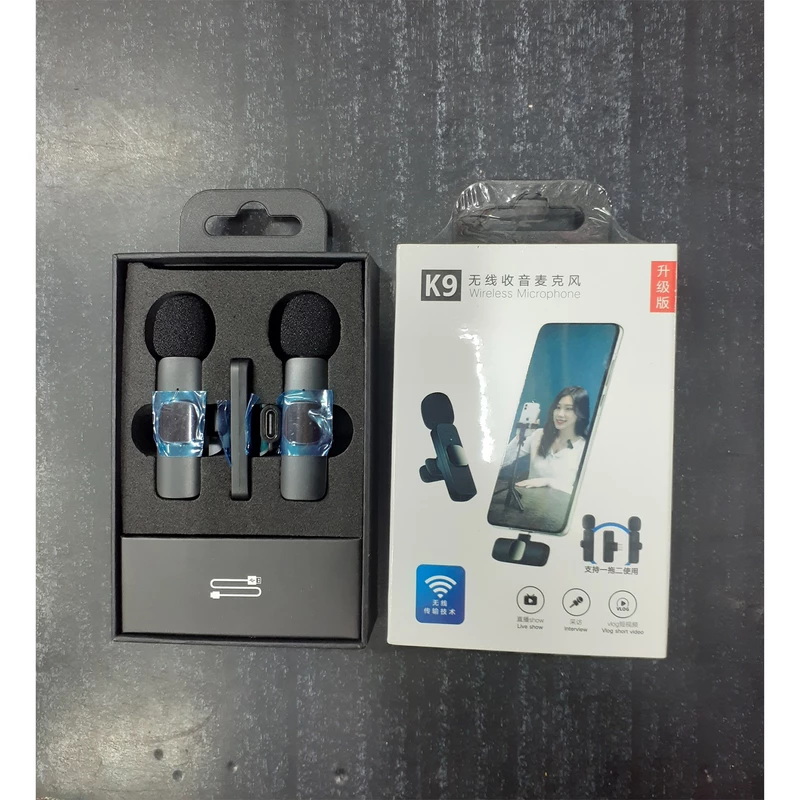 خانهاسپیکر و میکروفون میکروفن یقه‌ای بی‌سیم مدل K9 Dual Type-C بسته ۲ عددی