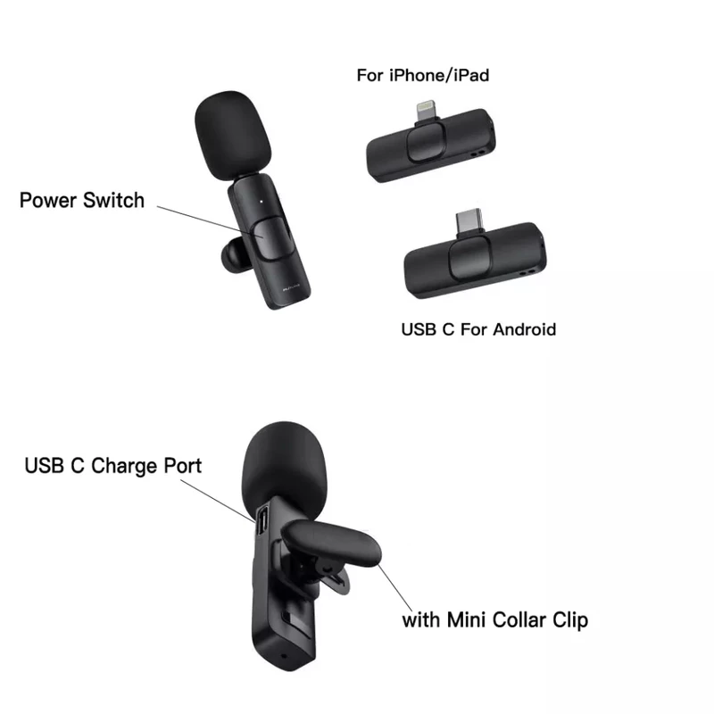میکروفن یقه‌ای بی‌سیم مدل K9 Dual Type-C بسته ۲ عددی
